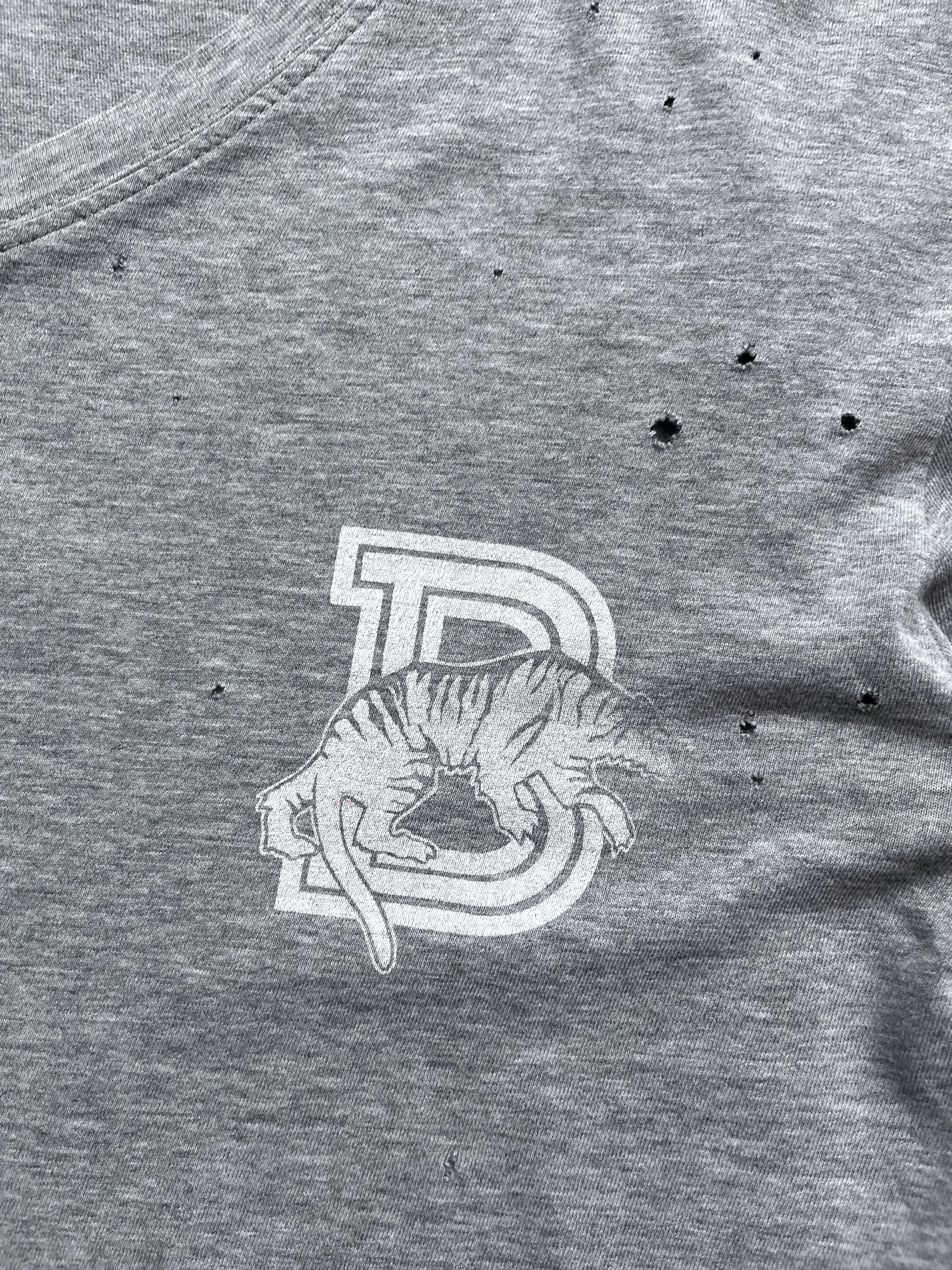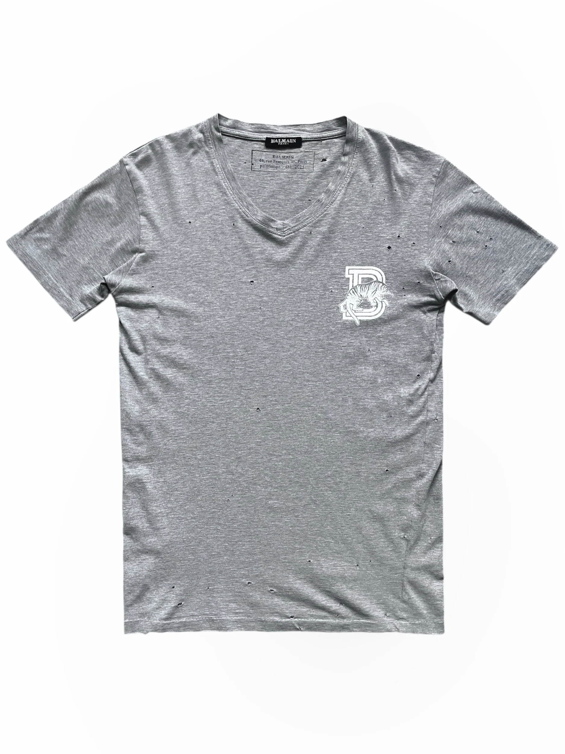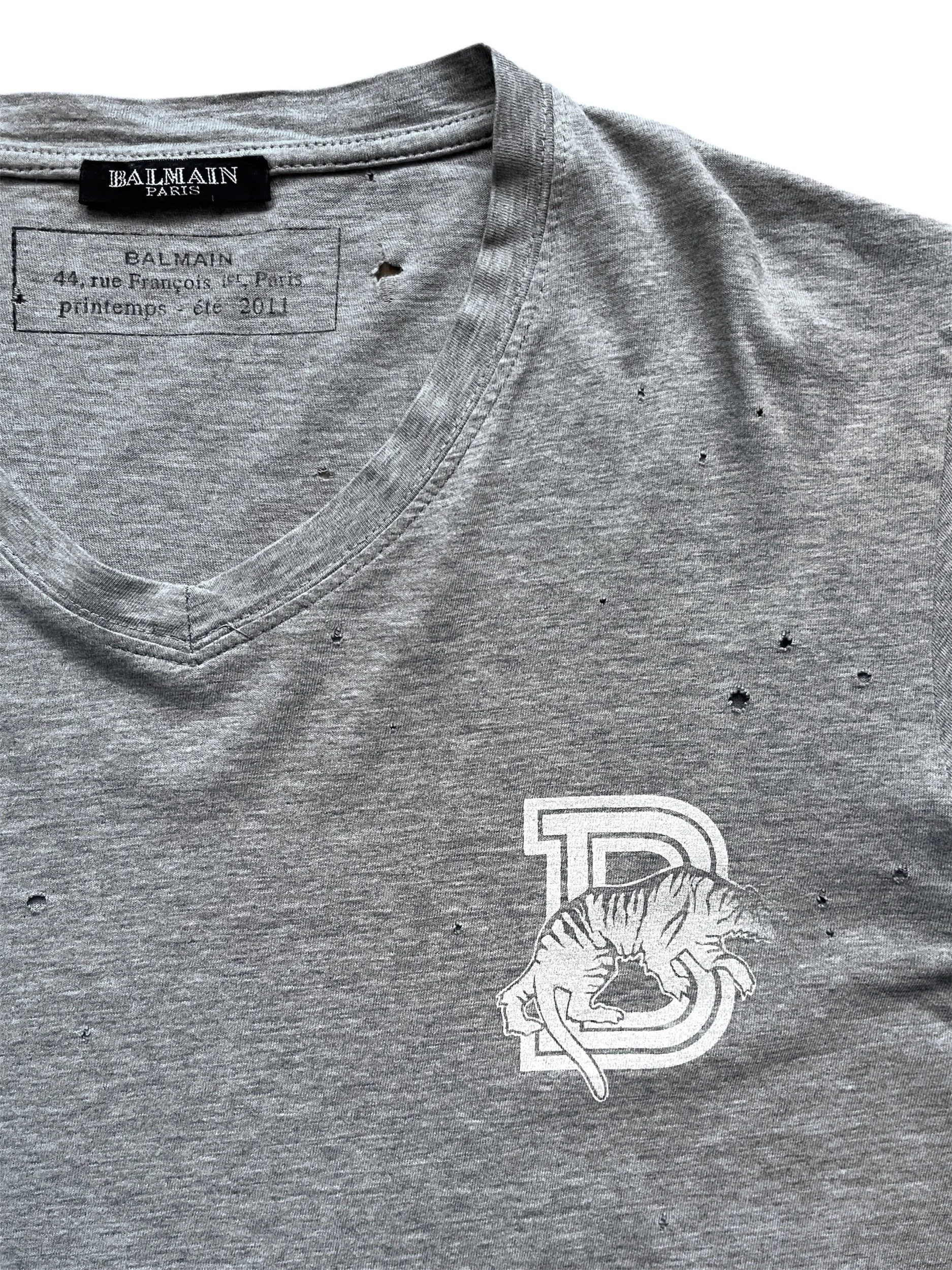 Rare iteration of the famous bullet holes T-shirt, this time featuring an intentionally faded Balmain logo with the signature 2011 tiger.