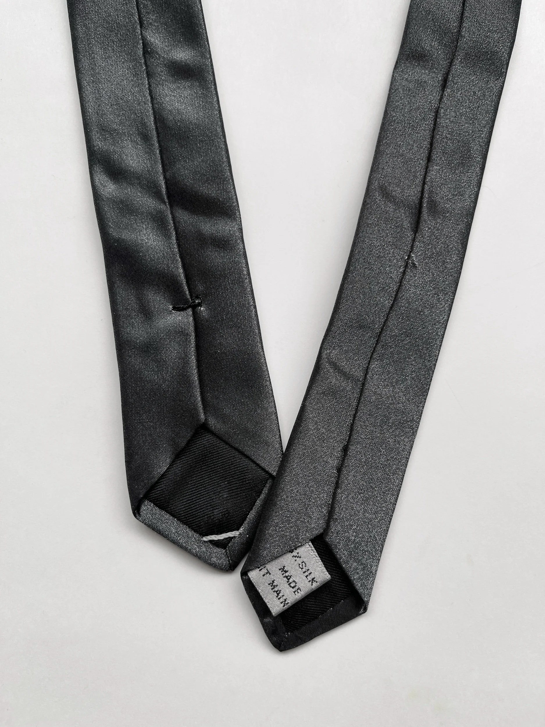 Shiny silver silk tie handmade in the Dior atelier in Italy.