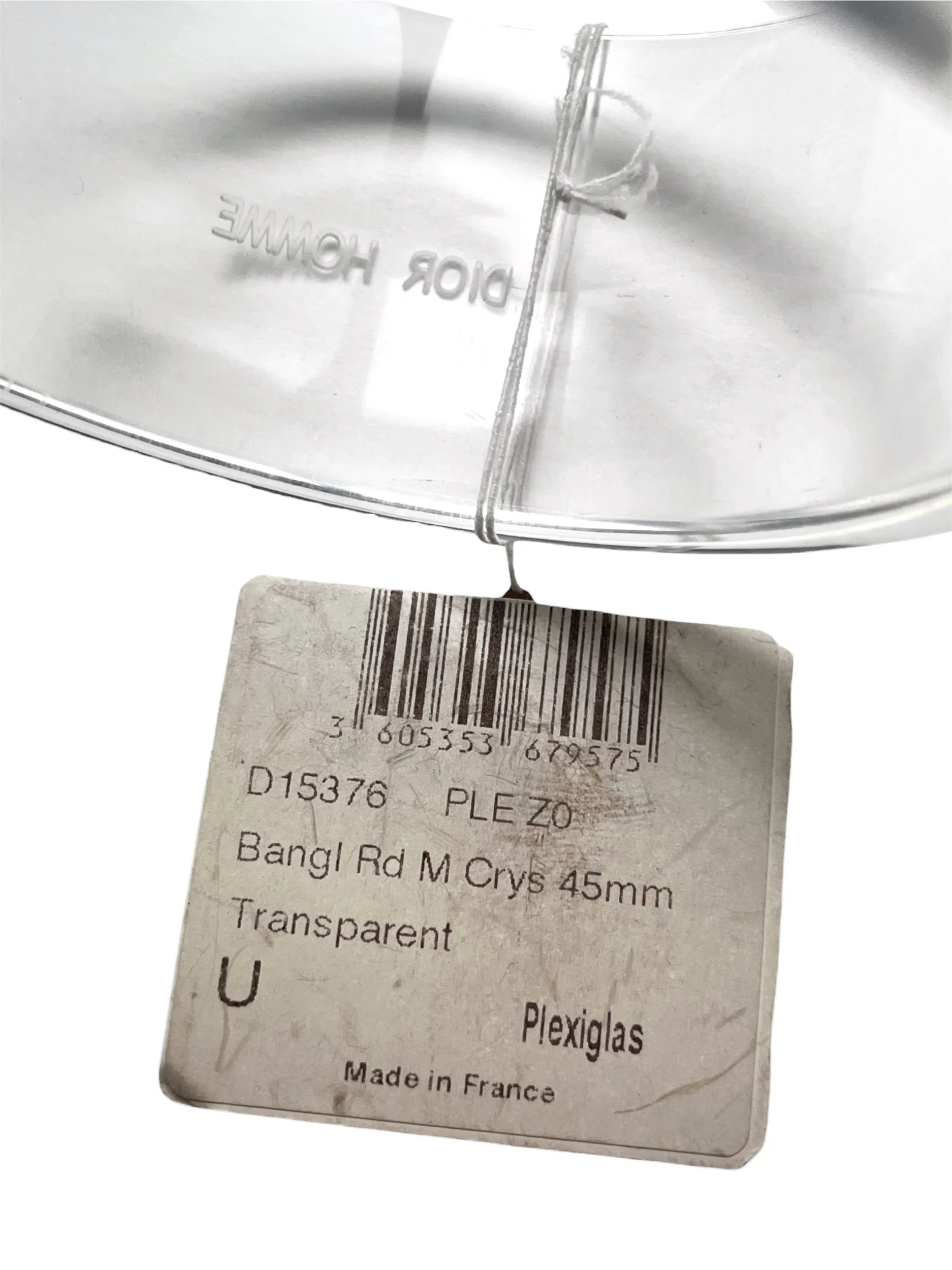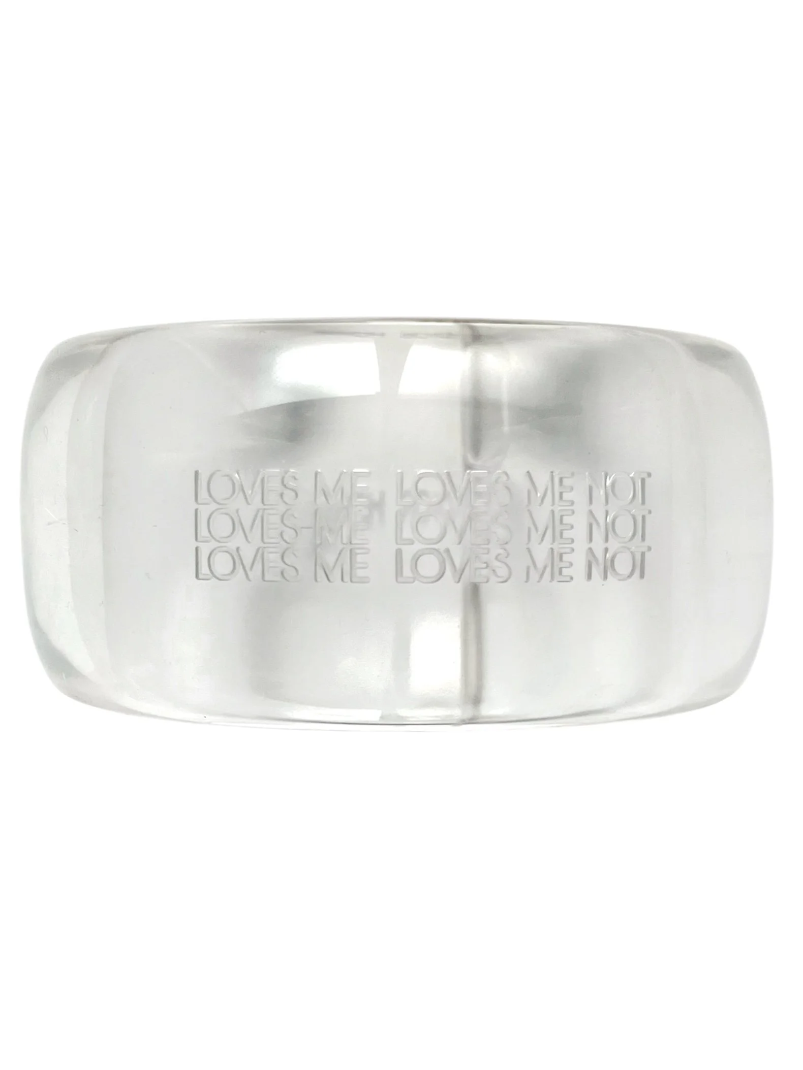 Plexiglas bangle featuring ‘LOVES ME LOVES ME NOT’ 3 times and DIOR HOMME engraving. New with original tags.